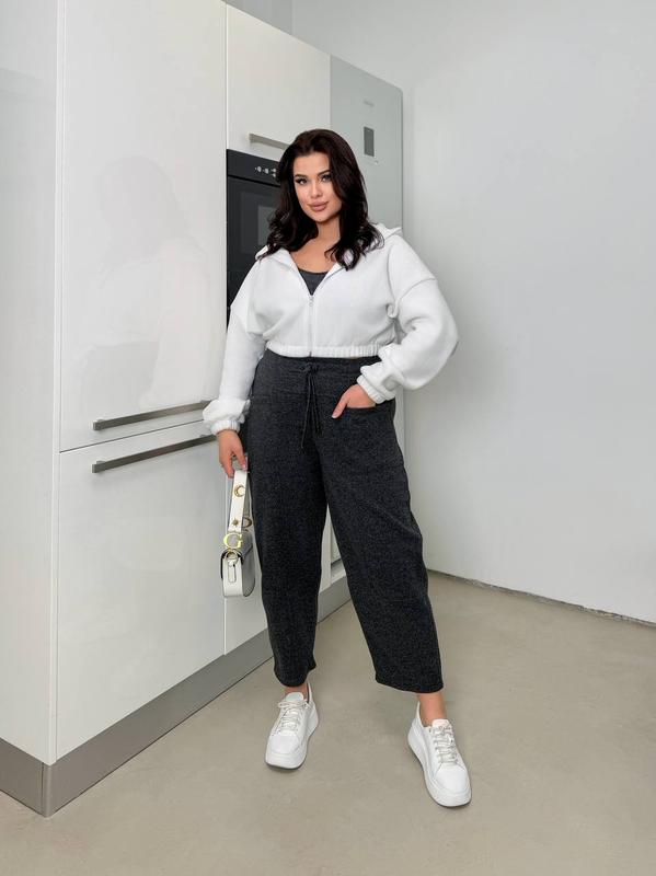 🌺🌸𝓝𝓮𝔀 𝓬𝓸𝓵𝓵𝓮𝓬𝓽𝓲𝓸𝓷 🌺🌸 ⚫️ ⚫️⚫️⚫️⚫️⚫️⚪️⚫️⚪️⚪️ 🔘🔘🔘🔘 ■ Штани ■ Модель : 0453 ■ Ціна: 840грн ■ Ціна: 860 грн ( 54-56 розмір) ■ Тканина : вовна на основі ■ Розміри: 42-44, 46-48 50-52 54-56 ■ Колір : пісок, графіт,світлий сірий ■ Опис: Наші Вовняні джогери є комфортними, стильними штанами вільного крою. Вони виконані з м'якого матеріалу з вовняною текстурою, що робить їх ідеальними для холодної погоди. У джогерів висока посадка з еластичним поясом на гумці, доповненим декоративним шнурком для краси моделі.Також помітні бічні кишені та акцентні шви, які додають брючному фасону структурованість. Низ штанів оформлений прямим кроєм, без традиційних манжет на гумці, що надає їм трохи вільніший, розслабленіший вигляд. Для замовлень і питань : ✈️@************* ✈️@************* Рин 848