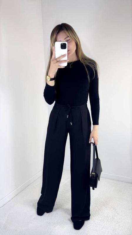 Штани Арт 92 har Тканина костюмка тіар Колір чорний, сірий, бежевий Розмір 42,44,46,48,50 Ціна дроп 730 грн Штани позаду талія на резинці для більш зручної посадки, з двома карманами у бічних швах, штани вільного крою, тканина дуже приємна до тіла, гарно спадає, трошки тягнеться