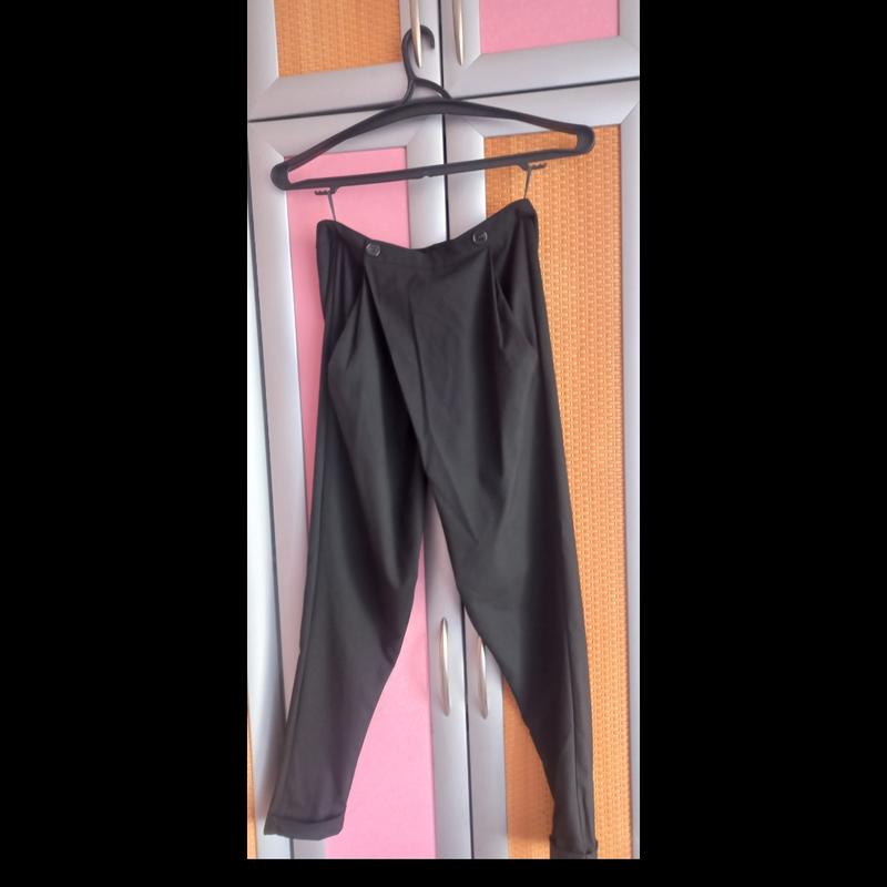 Брюки по типу галіфе.Знизу мають манжет.Гарна тканина,розмір с