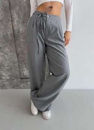 Штани з лампасами арт. nao. 2010 Тканина: костюмка високої якості Розміри: 42-44, 46-48 Кольори: сірий, чорний Модні штани в чудовій якості. Застібаються на гудзик+пояс ззаді на резиночці. Дуже зручна моделька.