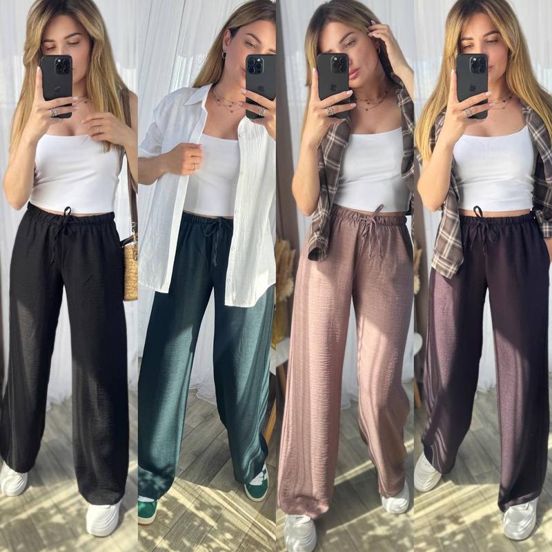 Штани Тканина льон бохо Цвет черный, шоколадный, изумрудный, мокко Размер 42,44,46,48,50,52 Брюки свободного кроя, с карманами, талия на резинке, средняя посадка Цена: 560 грн