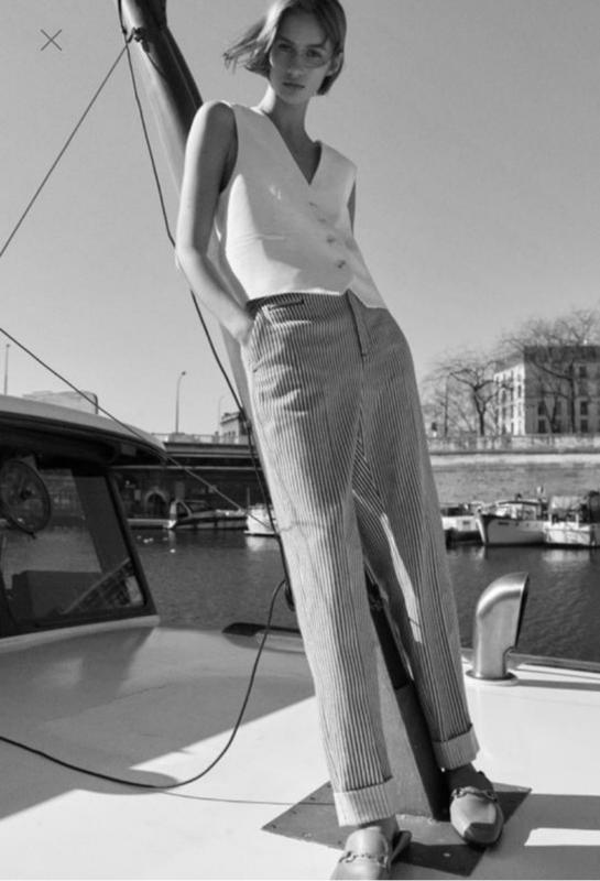 🌿брюки в полоску от Zara высокой посадки с боковыми карманами, ткань 100% коттон Размер:XS Замеры:ПОТ 36 см, ПОБ 49 см, длина 96 см