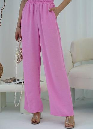 ШТАНИ ПАЛАЦЦО Модель: 595 ос Тканина: американська жатка Розміри: 42/44 та 46/48 Кольори: беж, барбі, , блакитний, моко , графіт та чорний Ціна : 360 грн 🌟 Дихаюча американська жатка, яка забезпечує відмінну вентиляцію та легкість, що робить їх ідеальними для теплої погоди.Легко поєднуються з різними верхами – від простих футболок до елегантних блузок, що дозволяє створювати безліч варіантів образів.