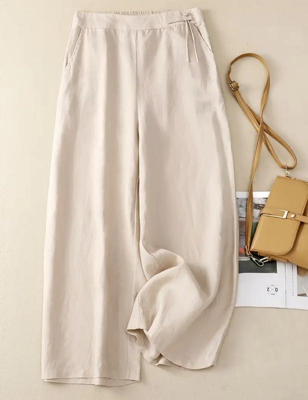 Укорочені літні широкі брюки штани капрі пояс на резинці, регулюється шнурком 30% льон, 10% поліестер, 60% віскоза Заміри: розмір M пот 33-42 пос 49 довжина 87 посадка 35 ширина штанини 28 розмір L пот 33-45 пос 55 довжина 90 посадка 35 ширина штанини 31 розмір XXL пот 38-49 пос 56 довжина 88 посадка 37 ширина штанини 33