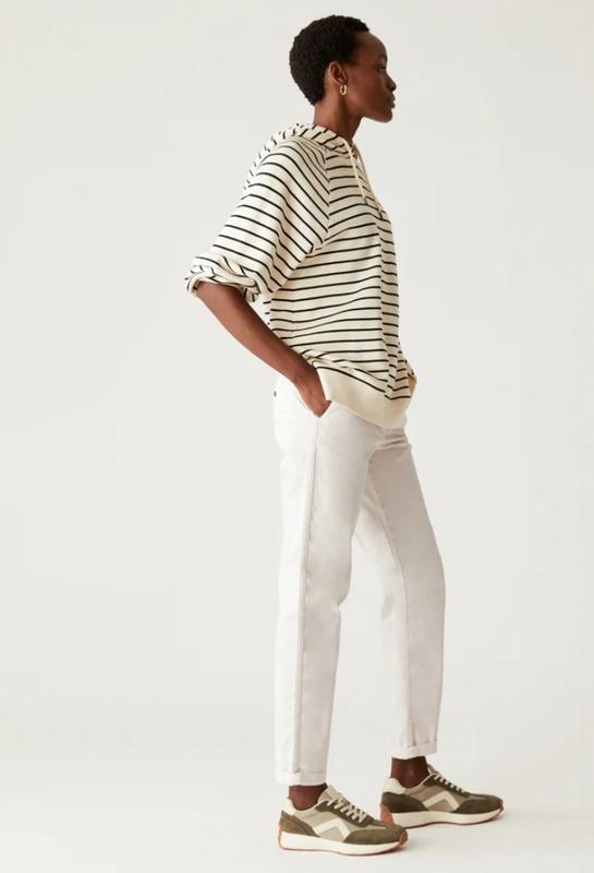Эти брюки-чиносы с высоким содержанием хлопка .Размер 10 Замеры длина 106 см .Полуобхват пояса 40 см Бедра 52 см. Штанина внизу 18 см. Длина от пояса до ластовіце спереди 29 см сзади 39 см .Новые с этикеткой