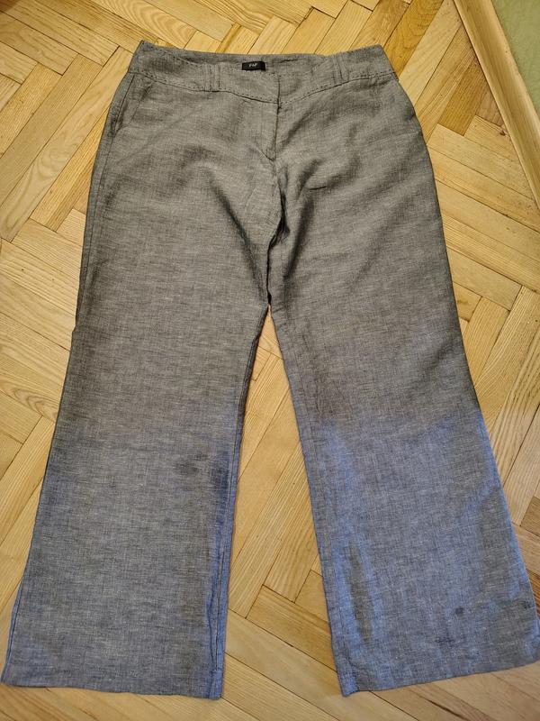 класні, широкі, тоненькі брюки на жарку погоду( 60%льон, 40% бавовна). пот 45си, ноб 59 см, довжина 101 см, ширина брючини 30 см.