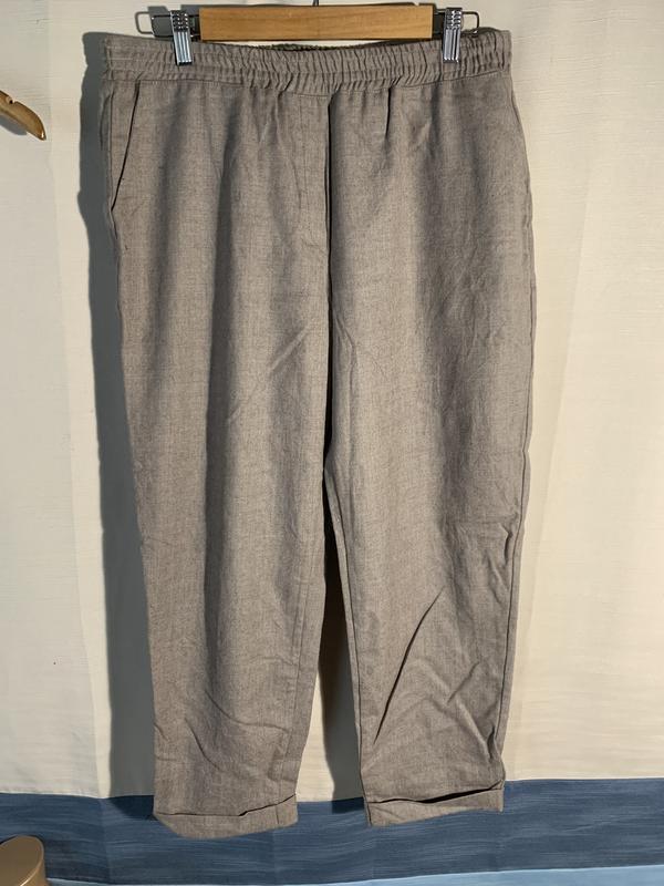 Пояс 43 см, тягнеться до 51 см Бедра 57 см Довжина 93 см Брюки тоненькі, але тканина з додаванням шерсті Осінній варіант