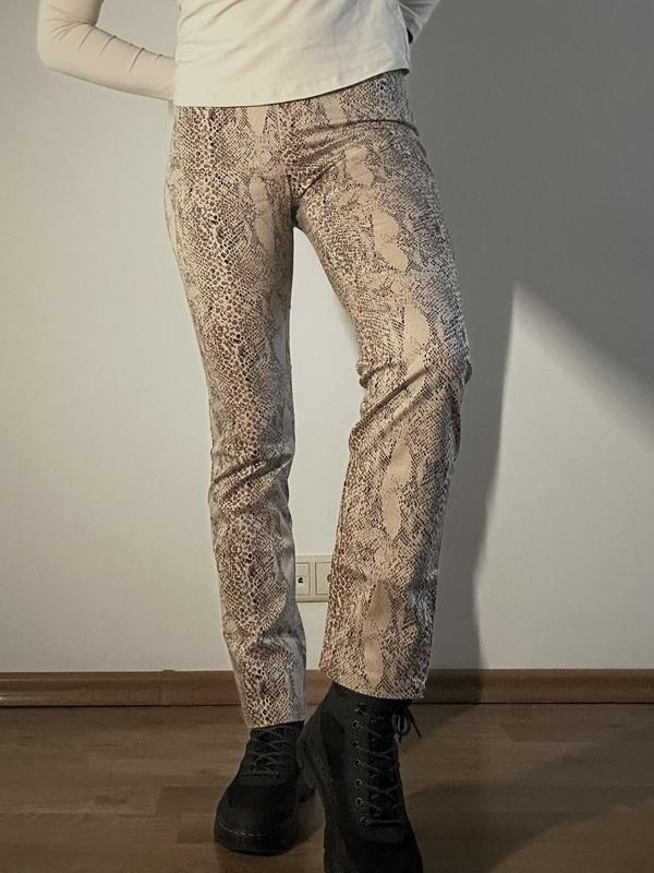 Бежеві штани зі змійовим принтом. Made in USA, бренд HAVE. Стан 5/5 Розмір вказано М, але краще сяде на високу S. Одягнено на фото на 178 см