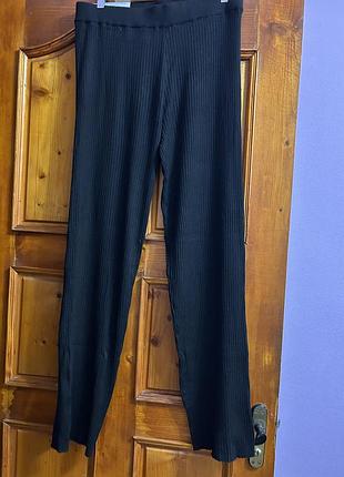 Штани у рубчик. Дуже добре тягнуться. Можно носити як вдома, так і в повсякденно. Розмір М, але мені здається вони більшомірять і підійдуть на розмір 48-52 Заміри : напівобхват стегон 48 см довжина від пояса 109 см