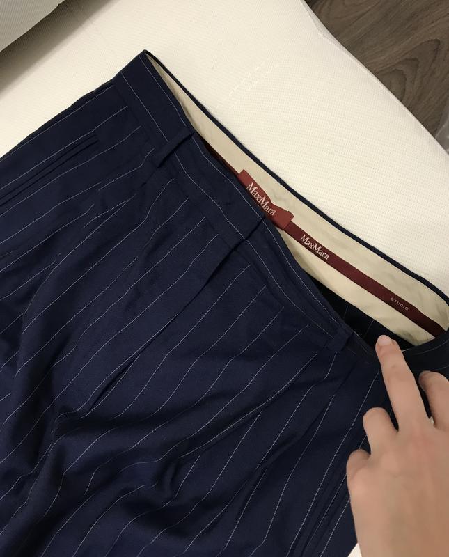 Невероятные шерстяные брюки на высокой талии Max Mara Studio красивого темно синего цвета. Замеры: полуобхват талии - 38, полуобхват бедер - 54, выистая посадки спереди - 34, сзади - 36, длина - 115. Состояние новых.
