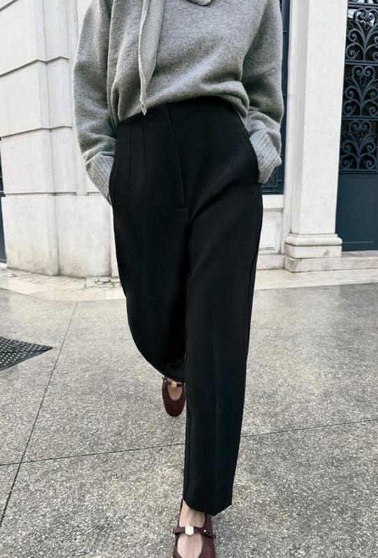 Брюки Zara, розмір M Стильні брюки з високою посадкою, виконані з якісної костюмної тканини. Мають бічні прорізні кишені ( їх не розрізала після покупки) самі вирішите треба їх робити карманами чи так залишити ! та рельєфні строчки спереду й ззаду, що візуально витягують силует і гарно підкреслюють фігуру. Застібаються на блискавку, внутрішній ґудзик та металевий гачок спереду. Добре тримають форму, виглядають елегантно та сучасно. Ідеально підійдуть як для офісного образу, так і для повсякденних або вечірніх луків ✨ Бренд: Zara Розмір: M