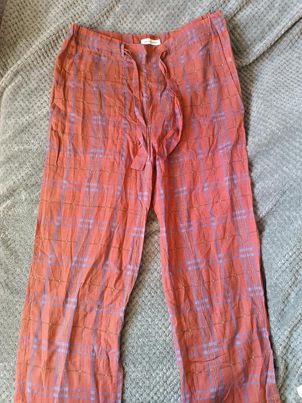 Легкі, напівпрозорі штани, розмір 36 заміри зроблю. Тонка бавовна. На поясі зав'язка.