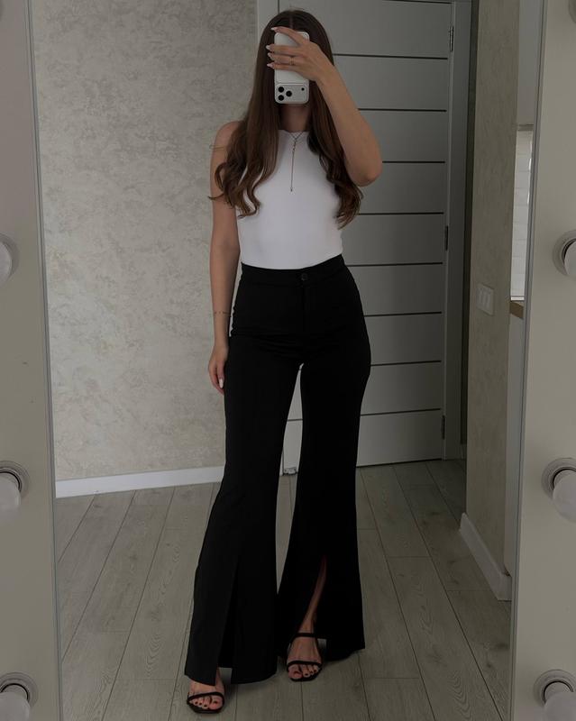 Фото реал ✨ Штани з розрізами💔 ▪️Мод: 769 сд ▪️Розмір: 40-42, 44-46 ▪️Тканина: якісний італійський трикотаж ▪️Колір: чорний Класичні штани з розрізами, виконані з якісної тканини🥰 Ідеально підкреслюють фігуру🔥 📌Заміри 40-42: Довжина бокового шву - 112 см Внутрішній шов - 82 см Талія - 60-67 см Стегна - 84-94 см Висота розрізу - 32 см 44-46: Довжина бокового шву - 113 см Внутрішній шов - 83 см Талія - 66-78 см Стегна - 92-102 см Висота розрізу - 32 см ⬆️ 970 грн