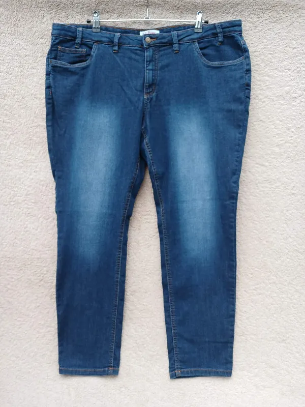 Джинси з кишенями, тягнуться, встановлені нові НО пояс 55-61, НО стегна 65-77, довжина 105, ширина внизу 19-21 Заміри відмінності половина