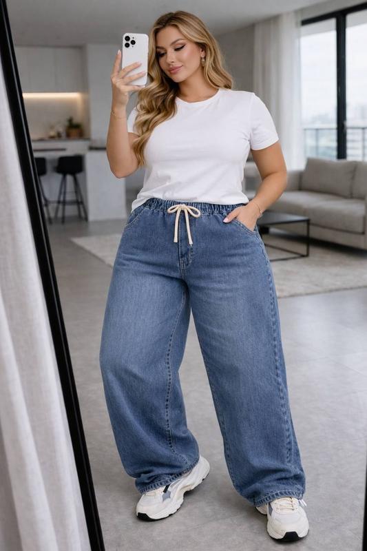 Новинка в наявності 🤍 Стильні широкі джинси палаццо з високою посадкою — ідеальний варіант для весни та літа 🤎 Вільний крій красиво витягує силует, підкреслює талію та додає образу трендової легкості. Модель: 1922 Батал ✅ Розміри: 50-52; 54-56; 58-60 ✨ Висока посадка ✨ Зручна резинка на талії + шнурок ✨ Трендовий широкий крій ✨ Комфортна щільна джинсова тканина Ідеально поєднуються як з худі, так і з базовими кофтами ,светрами чи футболками 🫶 Розмір :50-52 Резинка 84 см Об 120 Довжина 108 см Розмір :54-56 Резинка :88 см Об 130 см Довжина 109 см Розмір :58-60 Резинка 92 см Об 138 Довжина 109 см