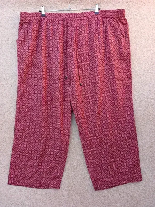 Супер скошені тонкі літні штанці з кишенями, пояс гумка,віскоза штапель, становлення нової речі НО пояс гумка 61-72, НО стегна 79, посадка 38/47, довжина 100, ширина внизу 30 Заміри відмінності половина