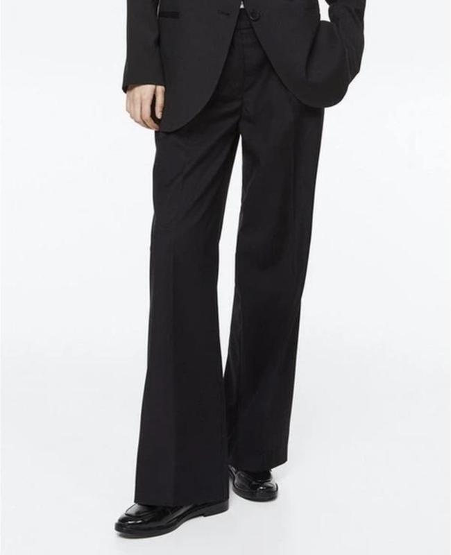 Чорні прямі штани з середньою посадкою 66% поліестер, 34% віскоза Нові Розмір eur 44 Півобхват пояса- 46 см Півобхват стегон - 60 см Посадка - 28/41 см Довжина -105/77 см Ширина штанини зверху/ знизу - 35/28 см