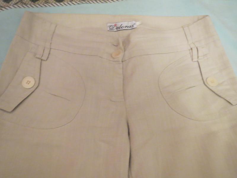 Продам жіночі брюки, тканина льон. Розмір 44-й, заміри: довжина по зовнішньому шву 102см, кроковий шов 82см, ширина в поясі 38см. Стан дуже хороший.