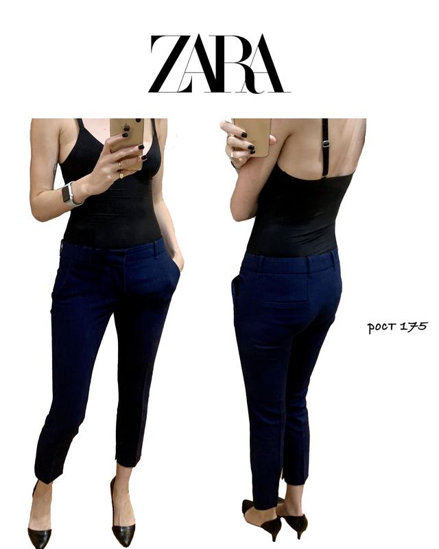 Вузькі штани зі стрілками, шлевкамі для пояса, на середній посадці. На штанинах шліци з боків. Передні кишені діючі, задні імітовані.