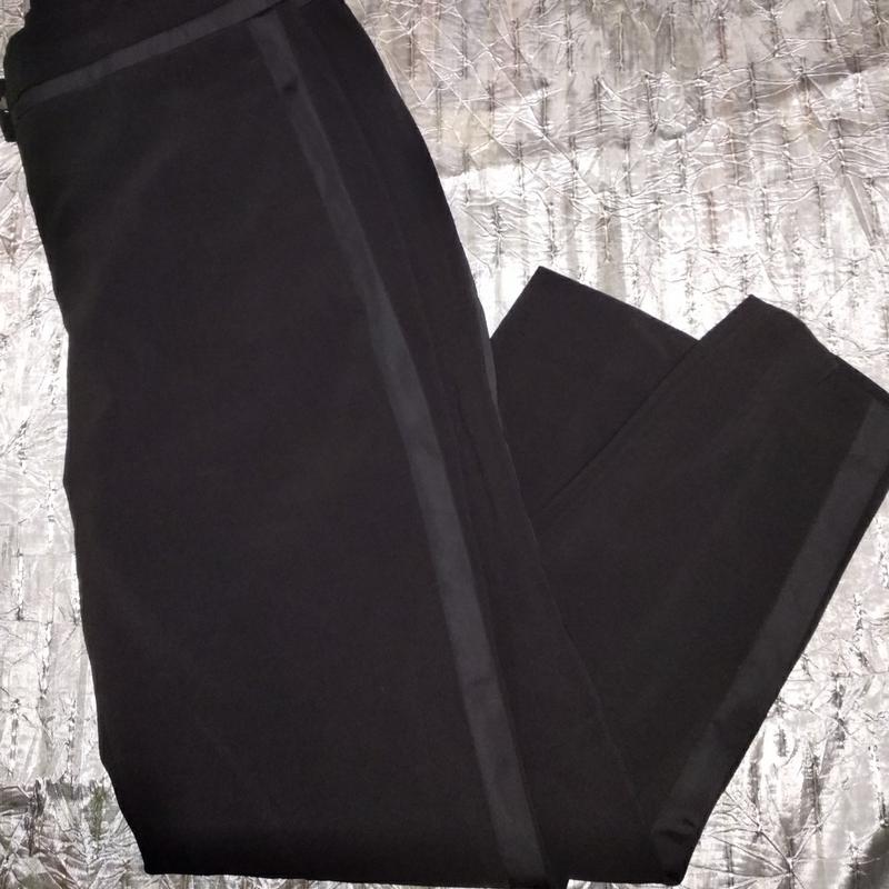 Брюки женские укороченные. Боковые карманы и задние, застёжка молния, крючок. Лампасы и вставки на поясе и карманах из гладкой ткани.