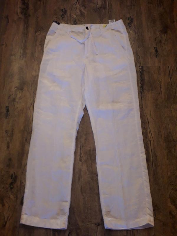 Ідеальні літні брюки, льон. Кишеньки, прямий крій, відмінної якості . Стан нового. Бірочка зрізана. Індія. Піт 42,43 см побіди 53. Посадка 33 ззаду 43 . Довжина 108 см