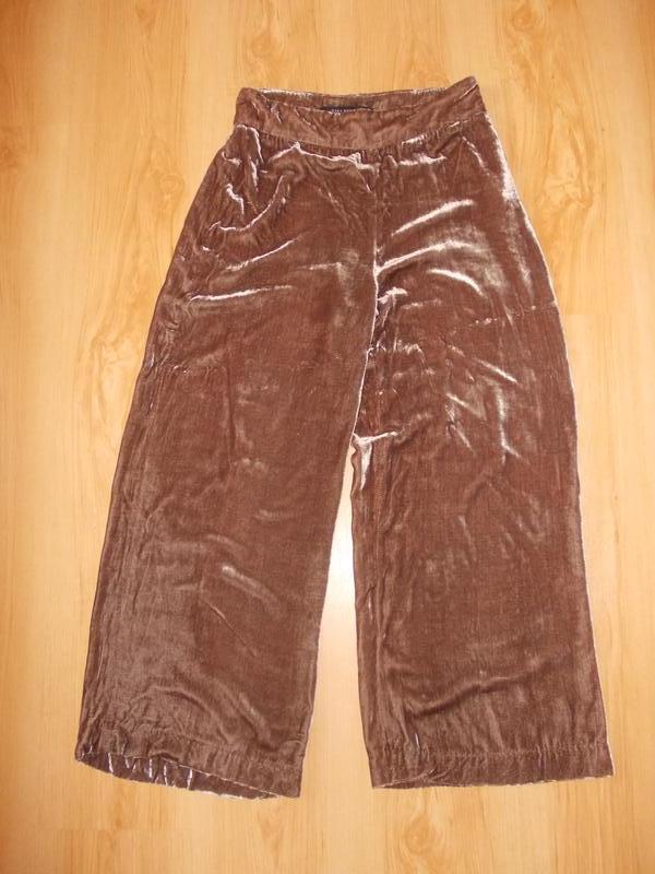 цвет немного не такой,как на фото,скорее как кофе с молоком,размер указан S.ПОТ 37,ПОБ 54,высота посадки 32/41,длинна 66\96,82% вискоза,18%шелк,ширина внизу по 30см.