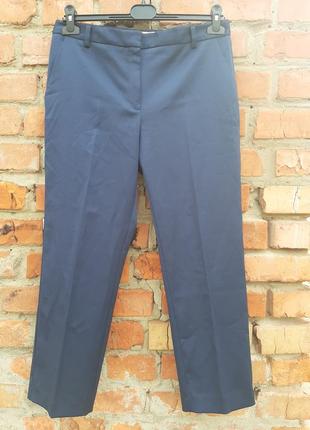 Штани Mango Suit collection, укорочений фасон, насичений синій колір, застібка на блискавку і гачок, на поясі хлястики, з боків дві кишені, ззаду два прорізних кишені (обманка). Розмір EUR 38/USA 6 Склад: 69% поліестер, 28% віскоза, 3% еластан У відмінному стані ПІТ - 41; Посадка - 24; Довжина - 91; Низ штанів - 19; Крокової - 65.