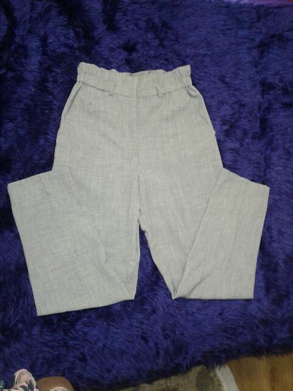 штани сірі з кишенями високий пояс на резинці з застібкою змійкою, в поясі 66-76, в стегнах 120, довжина 102