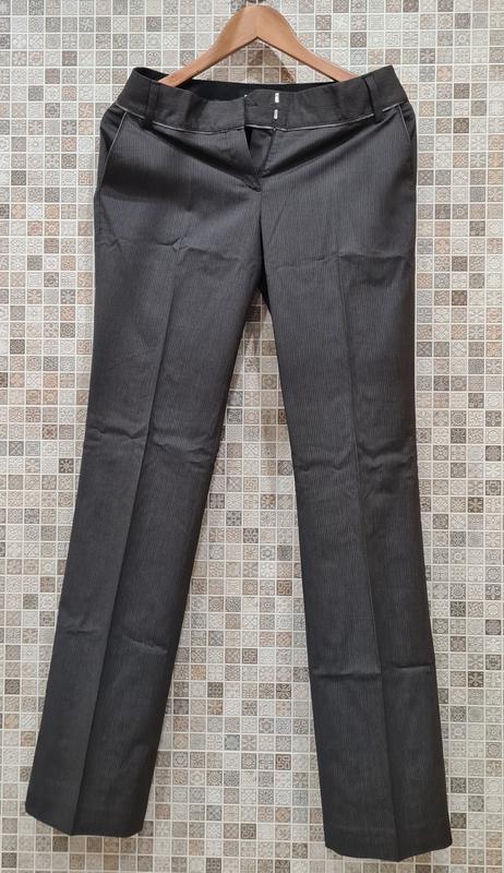 Класичні жіночі брюки красивого сірого кольору в тонку смужку. Розмір 38. Туреччина. 65% Поліестер, 30% Віскоза, 5% Еластан. Довжина по зовнішньому шву 106 см, Довжина по внутрішньому шву 83 см, ПОБІДИ 38 див. Обміну/Повернення немає.