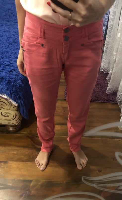 Сталеві штанці рожевого кольору,в хорошому стані,є маленький дефект,на фото показала,в носінні його зовсім непомітно.Розмір 38,всі виміри можете бачити на фото.