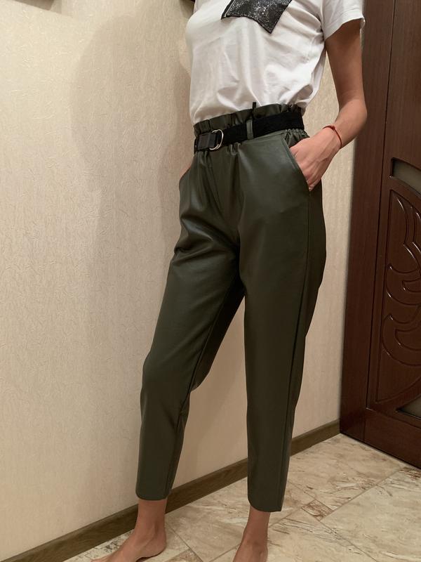 Нові брюки з еко шкіри Штучна шкіра преміум якості, матова, щільна, м'яка, структура максимально нагадує натуральну шкіру Всередині натуральна тоненька котонові байка Розміри в наявності від XS до 2 XL Є також в коричневому і чорному кольорах Чорний пояс в комплекті