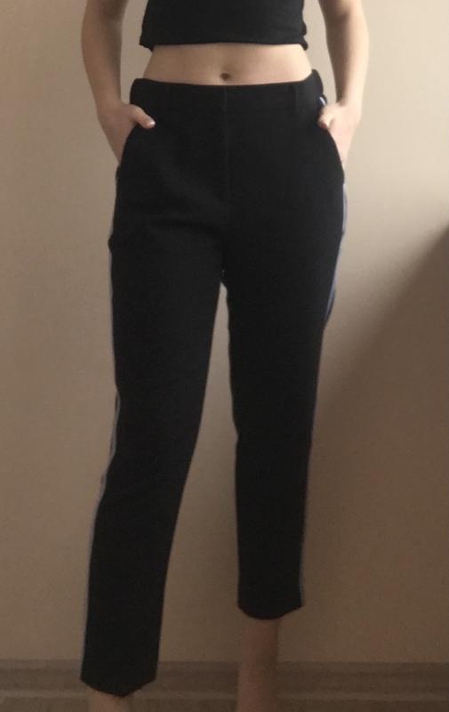 Стильні штани. Чудово підійдуть, як для ділового стилю, так і для звичайних прогулянок. Матеріал приємний до тіла. На талії є гумка, тому можна носити і без пояса. ПІТ-39 см ПОБІДИ-50 см Довжина-90 см