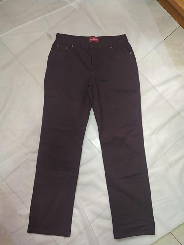 брюки % 97 бавовна ,3 % еластан ,42 розмір ,пот 43 ,посадка 37 см ,довжина 111 см ,колір дуже темний баклажан