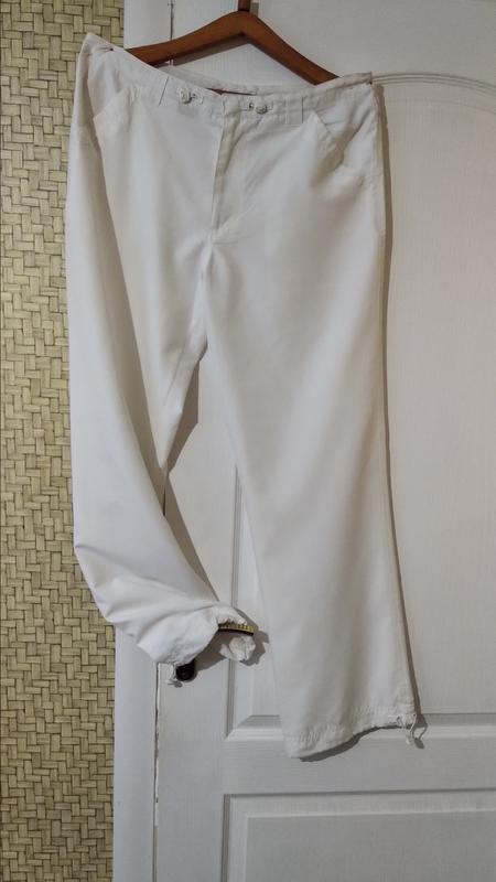 Літні штани.Не тягнутися.Пояс на шнурку і змійці.Внизу штанину можна зібрати на шнурок.Дуже приємна тканина,не просвічує. Aktive Довжина-106 піт-46 побіди-55 за халяви вгорі-32