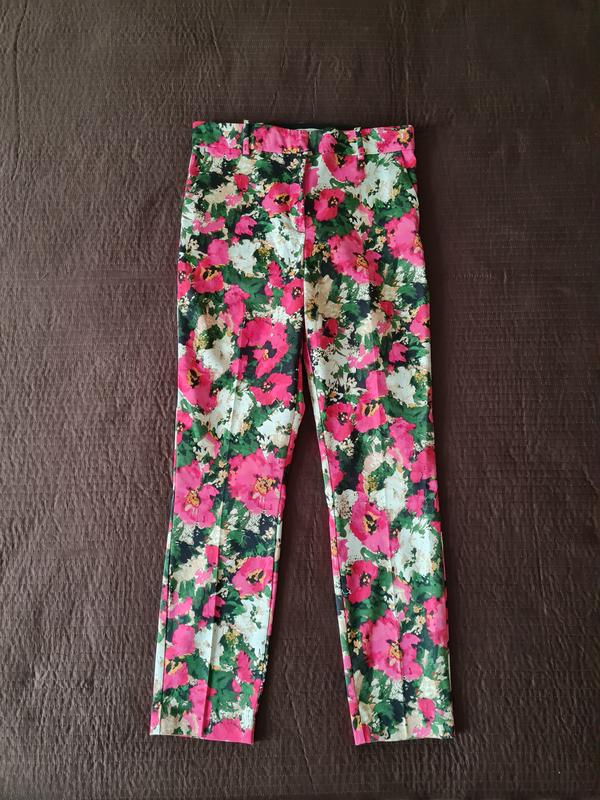 Літні брюки-слакси H&M, рівного крою, нормальна посадка, еластичний пояс на гачки, петлі для ременя, спереду каманы, ззаду імітація кишень. Розмір 40(EU) ВІД 80 см ПРО 100 см Довжина по боковому шву 97 см Довжина по внутрішньому шву 73 см Висота спереду 29 см бавовна 61% поліестер 36% еластан 3%