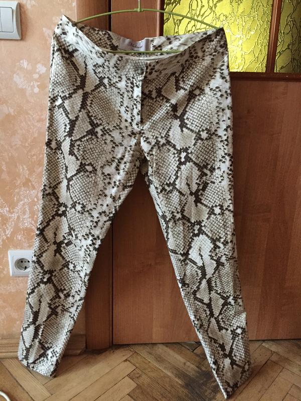 Брюки красивой расцветки «под змею», на лето. Длина 91 Пот 41 Пот 48 По низу штанины 14 Посадка 22/30