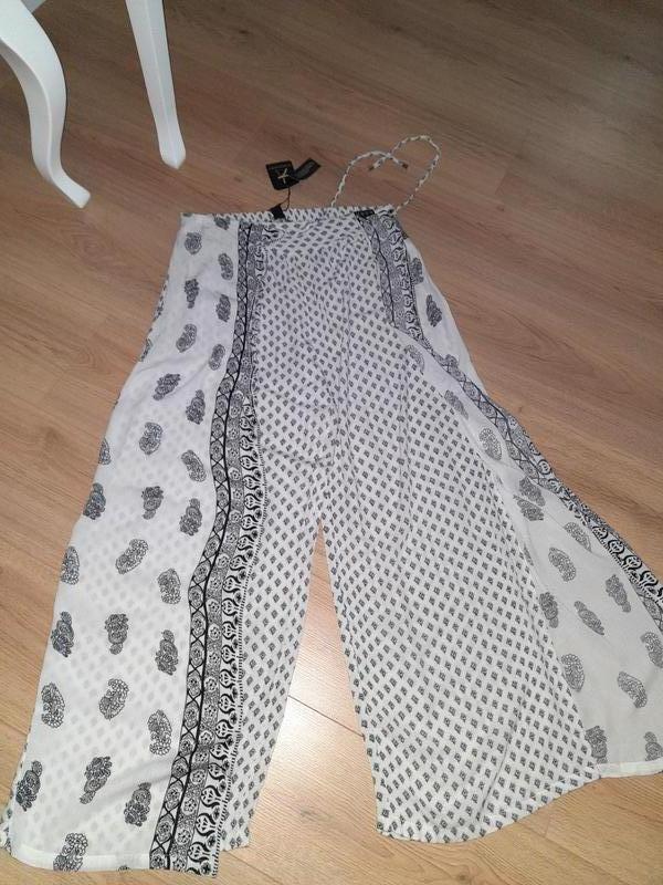 Дуже класні штани спідниця відомого бренду. знизу штани, наверх ніби як накидушка, дуже ефектно і стильно виглядають, підійдуть на будь - яку фігурку. Вільні, плотні, натуральні, спадаючі, зручні. Пояс ззаду широка щільна гумка+ шнурівки. На прогулянку, роботу,відпочинок, пляж - скрізь стильно, гарно і трендово. Нюансів не має. нові. Заміри👇 Пояс 40 см, тягнеться Довж.103