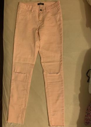 Легкі літні котонові брючки красивого ніжного персикового кольору в ідеальному стані. Одягнуті були один раз. З розрізами на колінах