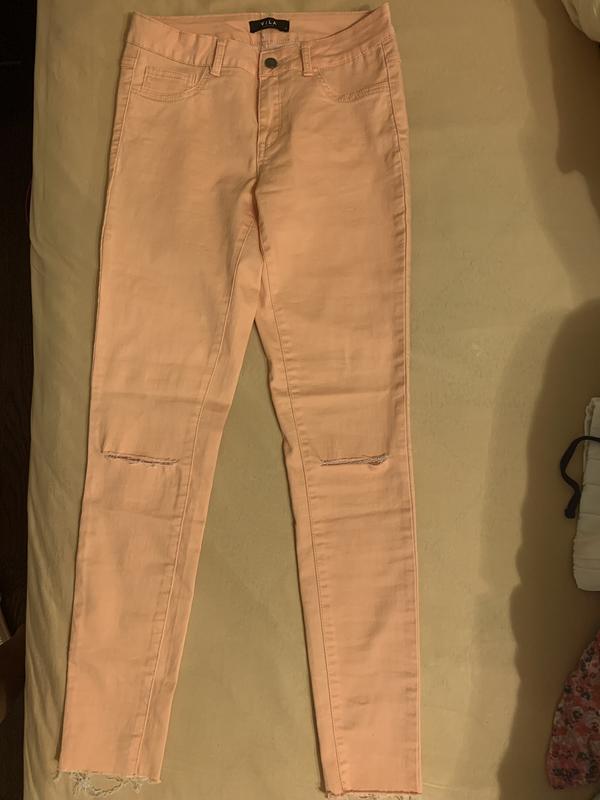 Легкие летние котоновые брючки красивого нежного персикового цвета в идеальном состоянии. Надеты были один раз. С разрезами на коленях