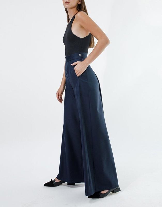 Женские брюки палаццо.Вещь в состоянии новой.Дл.-96см,От.-76см-80см(на второй ряд пуговиц.см.фото)Об.-194см,Ширина по низу.-33см
