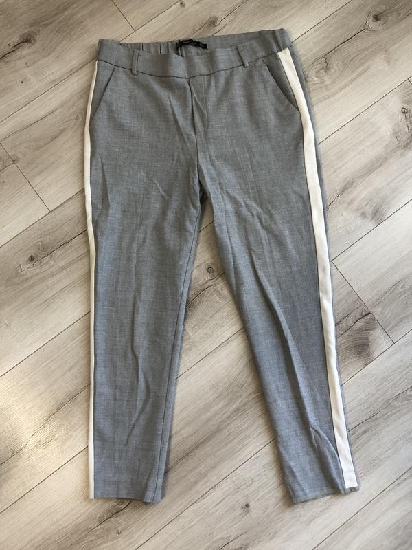 Плотные твидовые брюки с лампасами Очень хорошая ткань Держат форму Немного укорочены Завышенная талия на резинке Состояние идеальное!