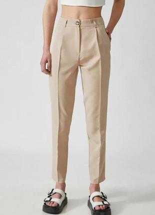 Идеальные котоновые брюки , зауженые к низу. Высокая посадка. Идеальное состояние. Фирма Debenhams Casual Club 100% котон, не тянутся. Пот 37см Поб 54см, посадка спереди 32см, посадка сзади 43см. Ширина ноги сверху 32см, снизу 16см. Длина штанины по внешнему шву 103см, по внутр. 73см. Ткань средней плотности, типа плащевка.