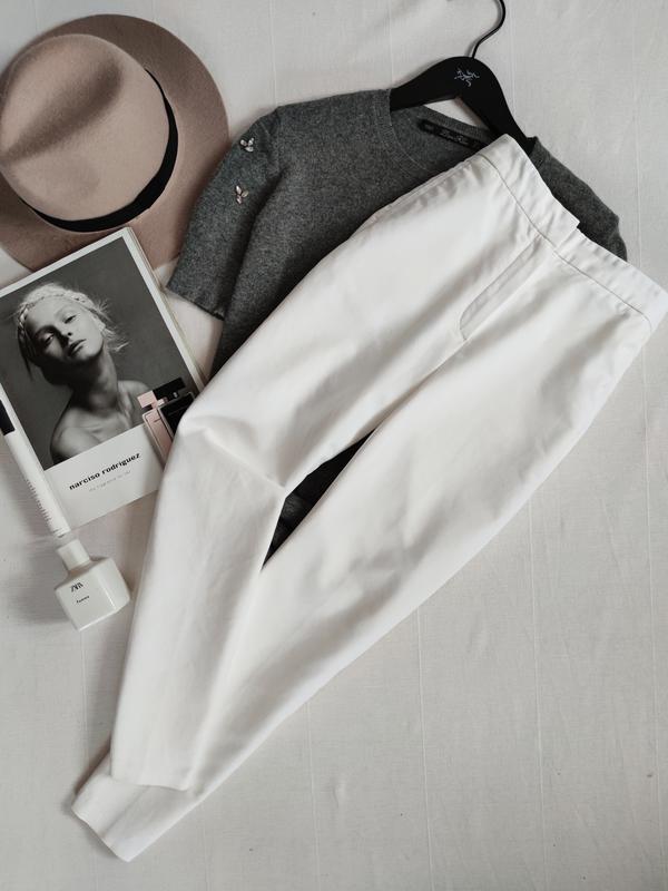 Білі брюки від Autograph з боковими кишенями, завужені до низу, тканина плотний котон, розмір S, ширина поясу 37 см, ПО бедер 45 см, довжина 88 см