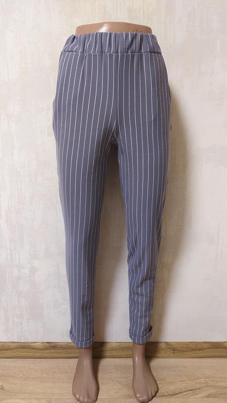 Розпродаж залишків!!! Легкі штанці на весну чи літо, в смужку. Тканина легка, приємна до тіла, добре тягнеться. Висока посадка, збоку кишені. Розмір 42(додаткові заміри на вимогу)