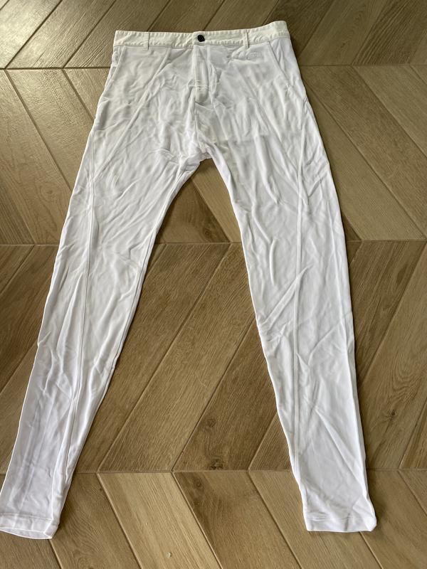 Гладка, стретчевать тканина. Є підклад у верхній частині брюк.