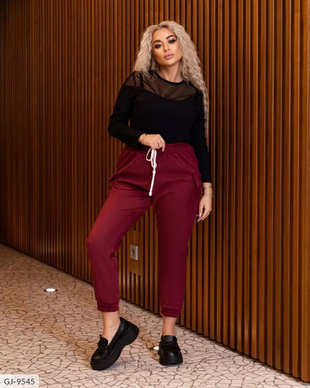 Ткань замш на дайвинга Цвет черный, голубой,бордо,хаки Мерки штанов 051 по готовому изделию 50-52 обьем бедер - 112 см, объем талии штанов (обьем резинки) - 78 см, длина штанов- 100 см, обхват ноги вверху - 68 см обьем манжета внизу (обьем резинки) - 30 см, 54-56 обьем бедер - 122 см, объем талии штанов (обьем резинки) - 84 см, длина штанов- 101 см, обхват ноги вверху - 70 см обьем манжета внизу (обьем резинки) - 31 см, 58-60 обьем бедер - 132 см, объем талии штанов (обьем резинки) - 90 см, длина штанов- 102 см, обхват ноги вверху - 72 см обьем манжета внизу (обьем резинки) - 32 см,