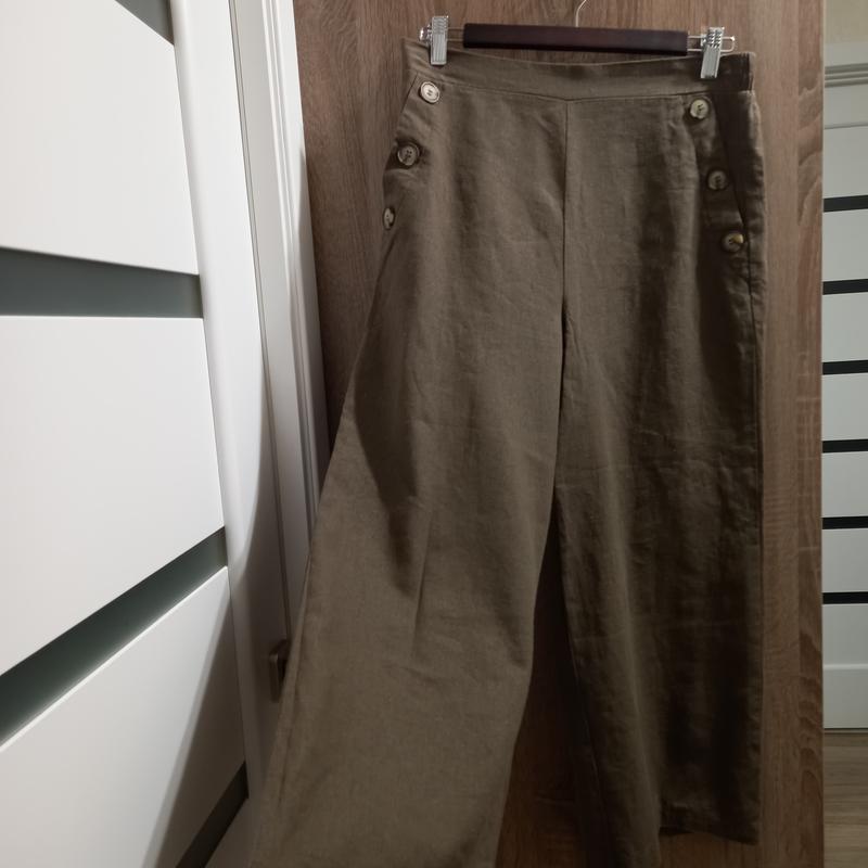 брюки широкие ,сзади на поясе резинка пот 38 без учёта резинки ,посадка 33-36,длина 92,поб 56