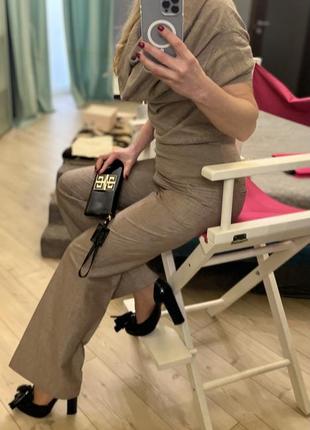 Не плотные ровные брюки очень красивого цвета. В составе есть лен и хлопок с добавками. Крой прямой, талия средняя. Также продаются все вещи что вы видите на мне на этих фото, топ Cruciani кашемировый с шелком, туфли MSGM, клатч Givenchy. Все вместе создает неповторимый и очень дорого выглядищий образ. Спрашивайте или ищите в моей Шафе..