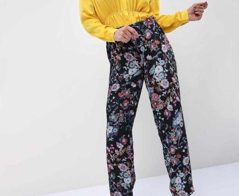 Модель виготовлена з м'яких і текстурованою тканини. Штани з тонкою талією і резинкою на талії. Суцільний квітковий принт. Вільний крій. Талія 33 -40 гумка Стегна 50 Довжина 103 Ширина штани вгорі 31 внизу 24 см . 100% віскоза
