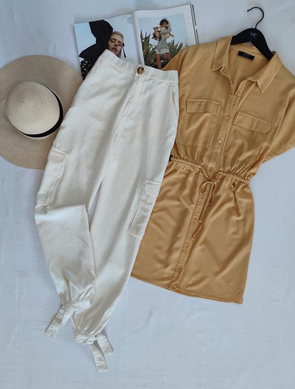 🌿молочні брюки карго від Zara високої посадки Розмір:S Заміри: ширина поясу 35 см, ПО бедер 53 см, довжина 97 см Склад:котон